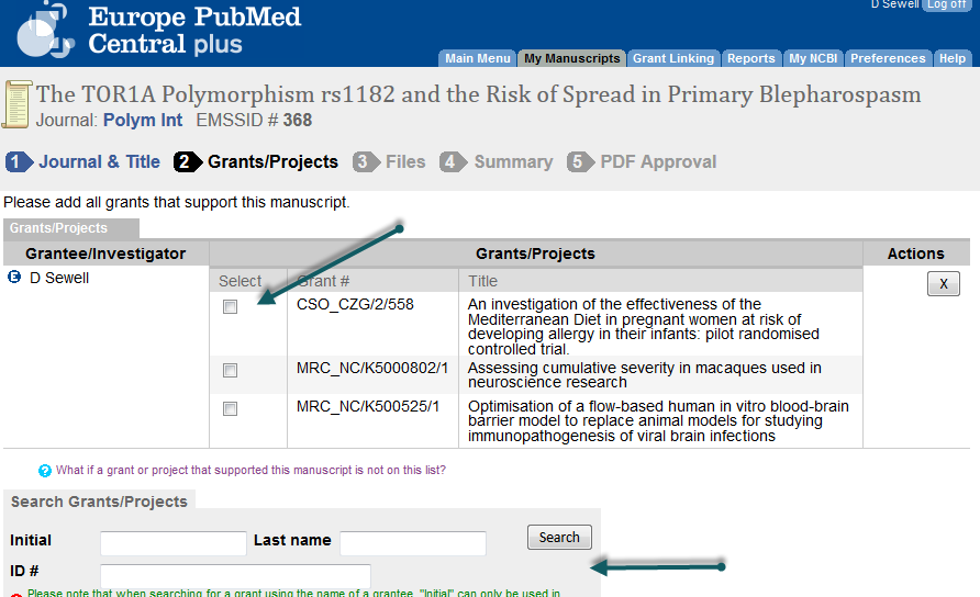 PMC Funders. Log in to Europe PMC plus and select the Grant Linking tab to