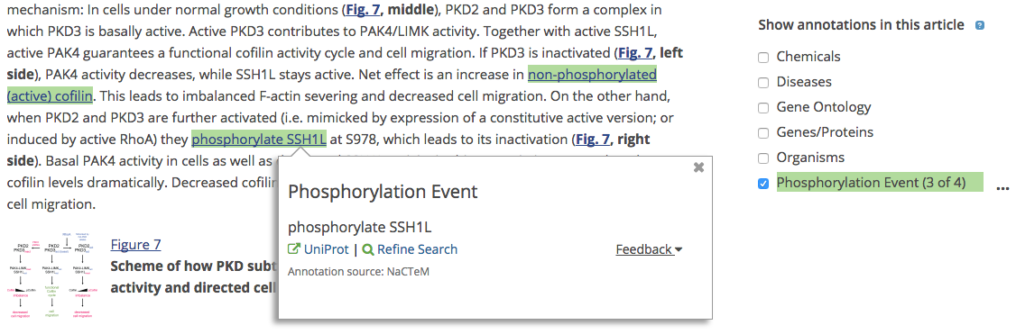 Another text-mining group – NaCTeM – has provided phosphorylation event annotations, as shown below.
